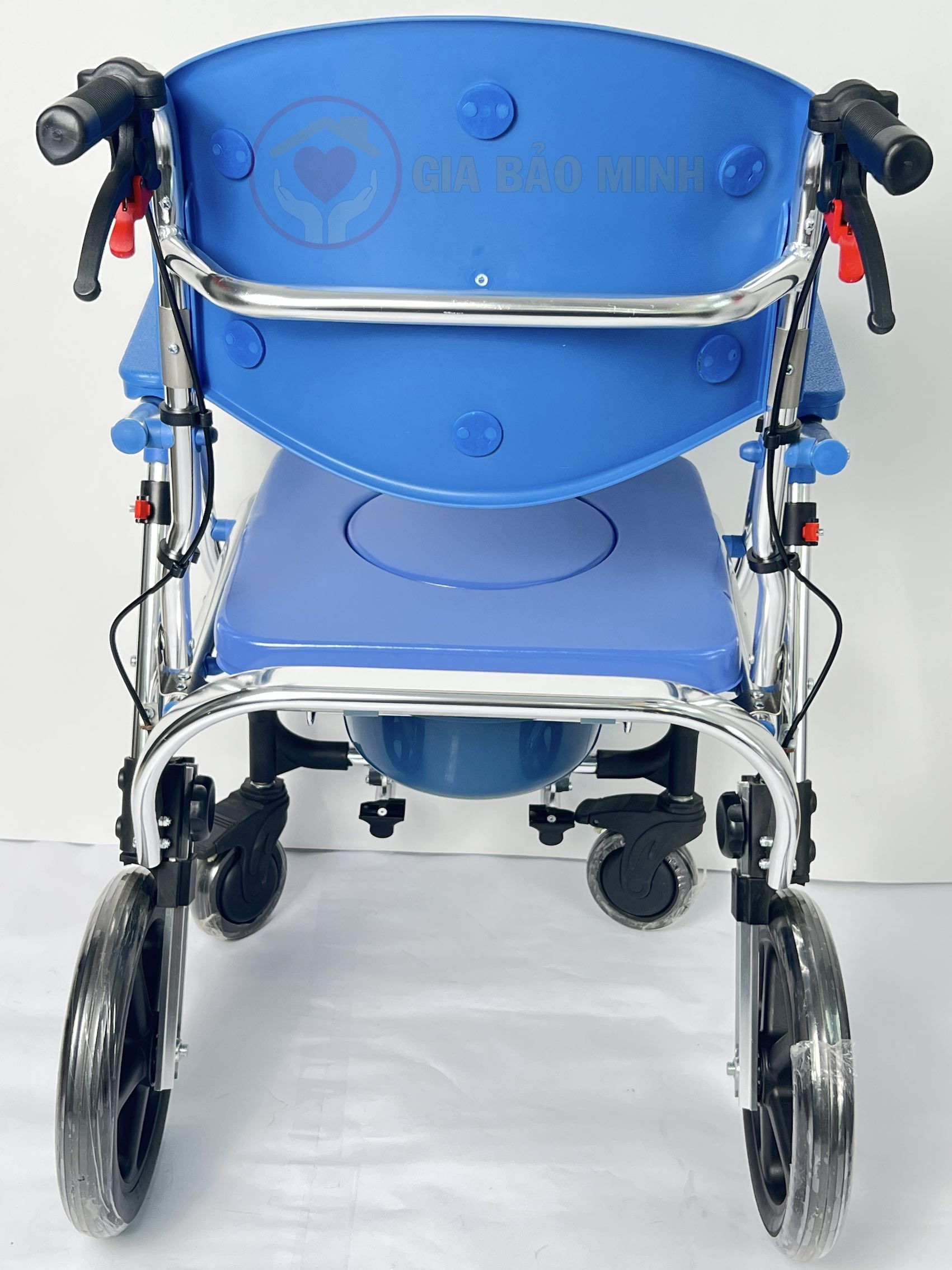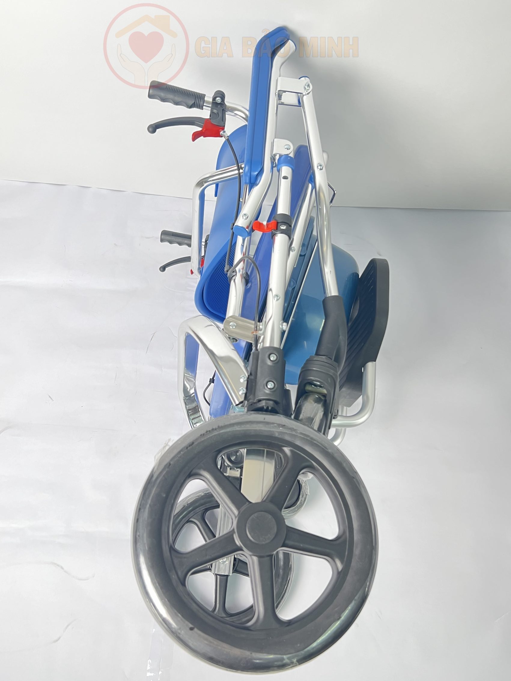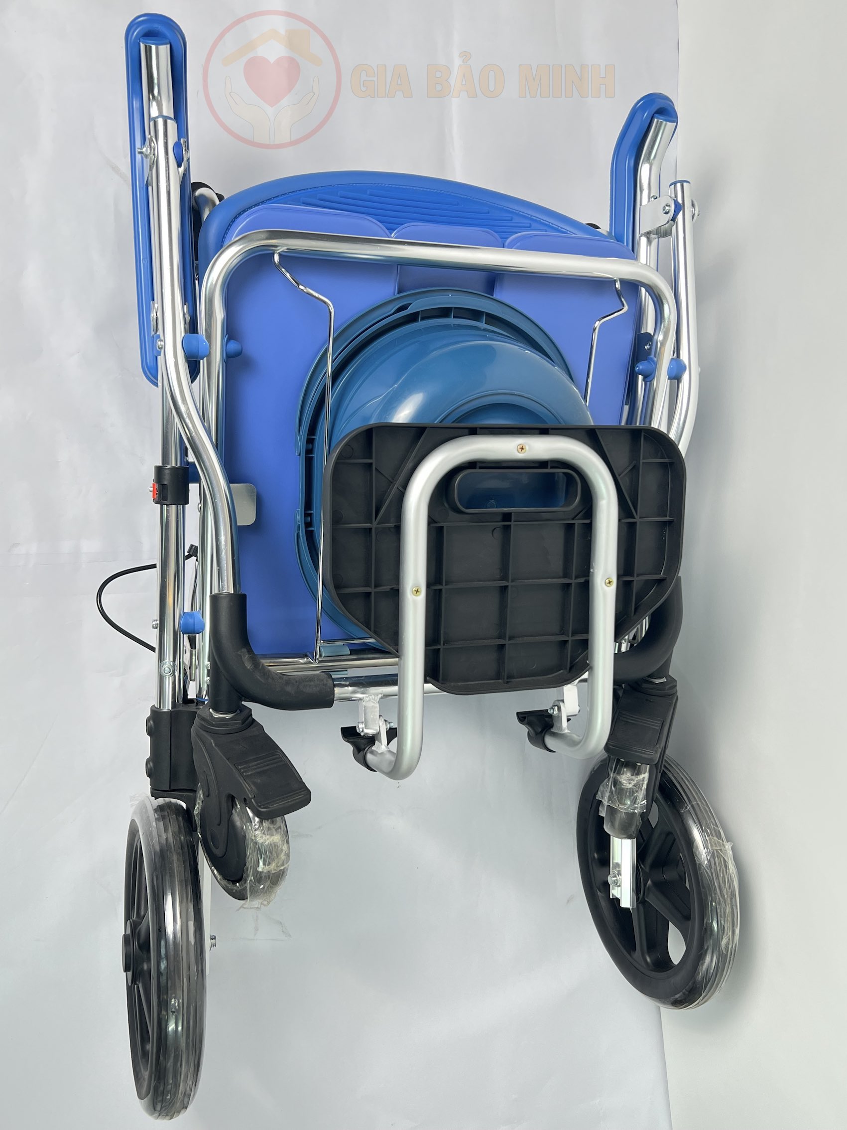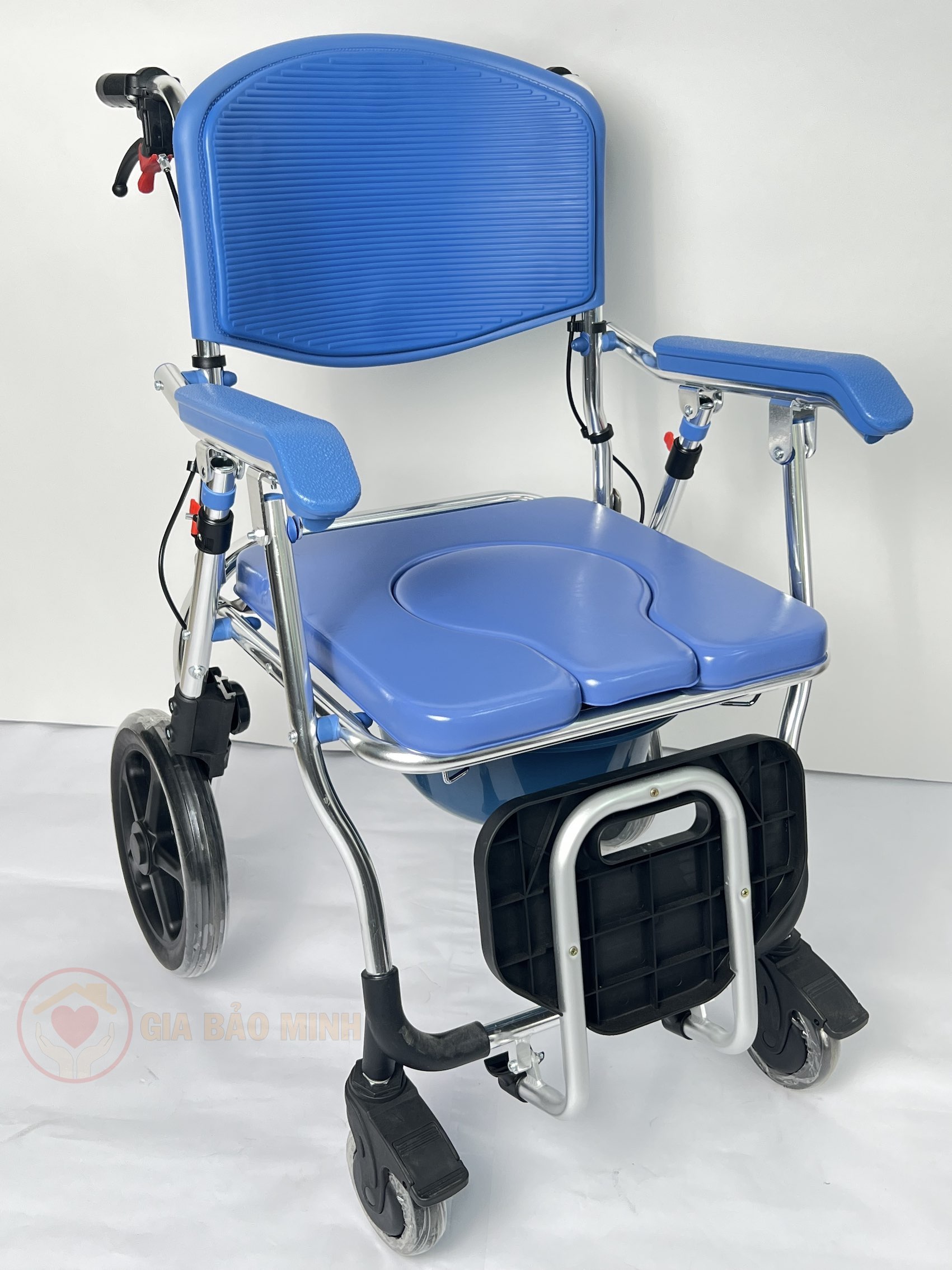 - Đây là một chiếc xe lăn kiêm ghế bô, xe tắm, xe ngồi sinh hoạt hàng ngày cao cấp có tính năng gấp gọn và kéo đi thuận tiện. Khung được làm bằng hợp kim nhôm siêu nhẹ, chắc chắn, sáng bóng và tính mỹ thuật cao, không bị han gỉ.